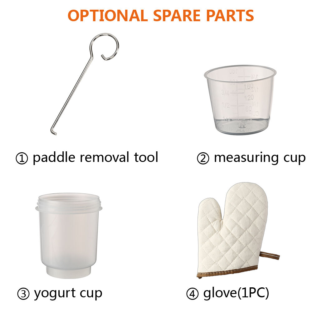 Optional: 1) Measuring Cup 2) Paddle removal tool 3) Yogurt Cup 4) Glove(1pc)