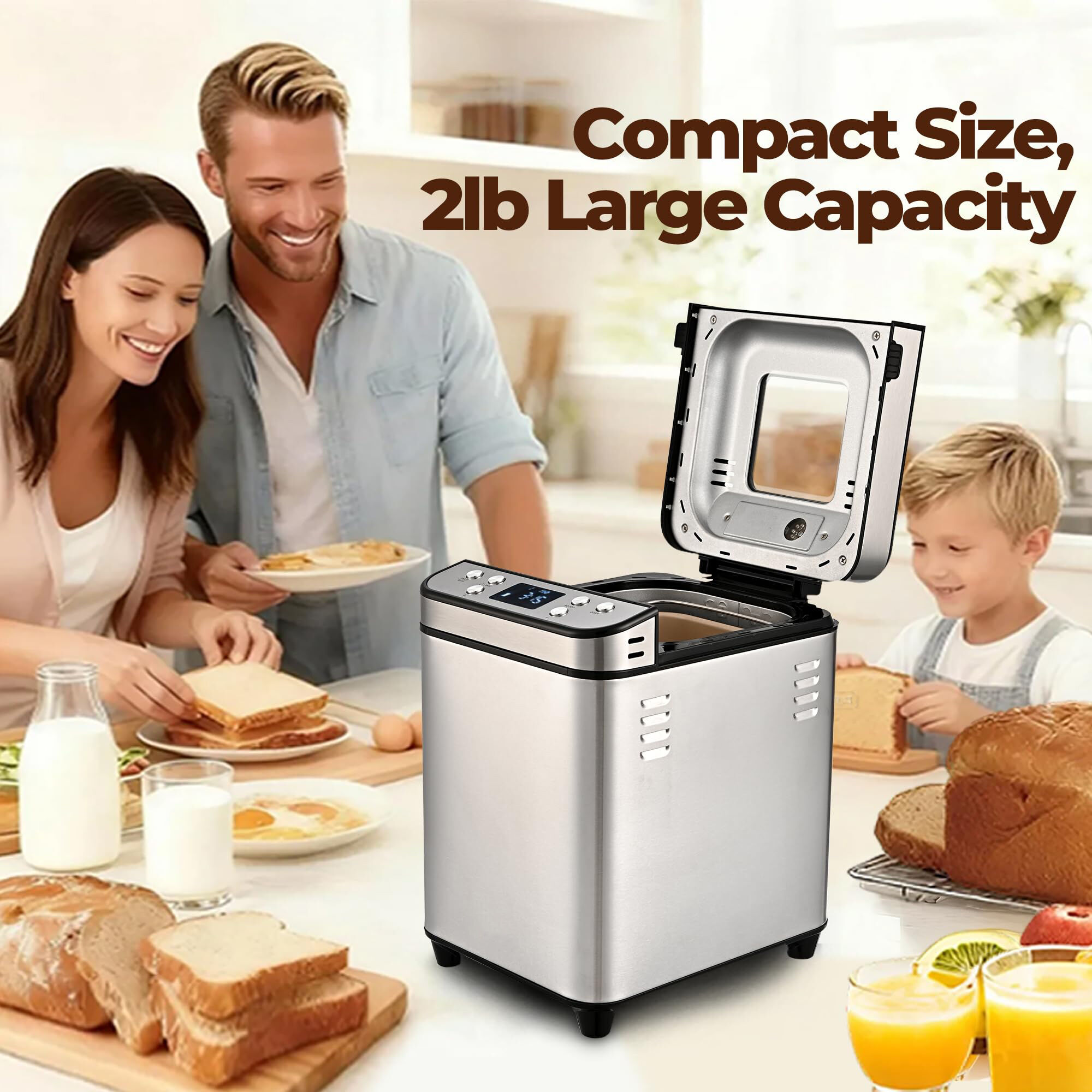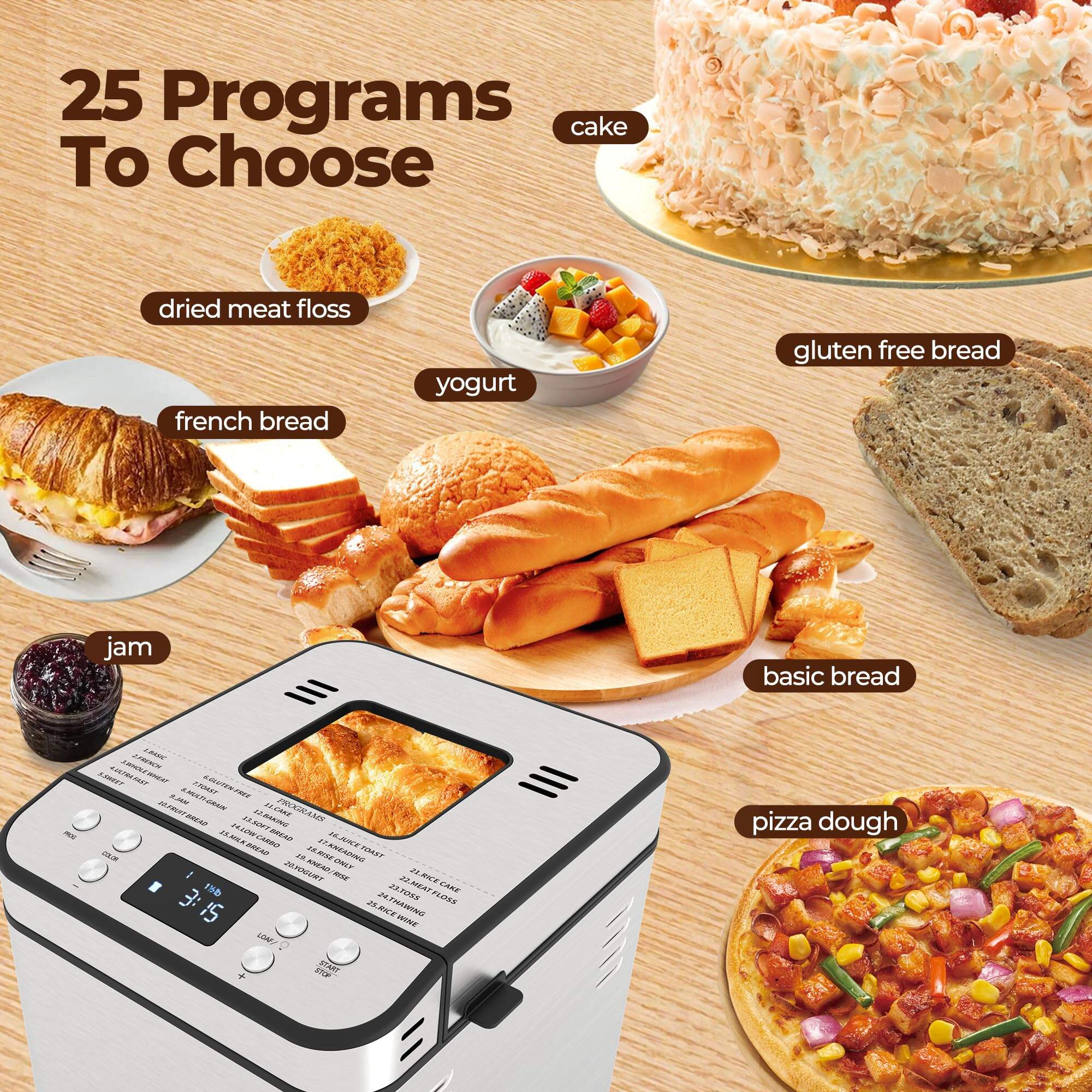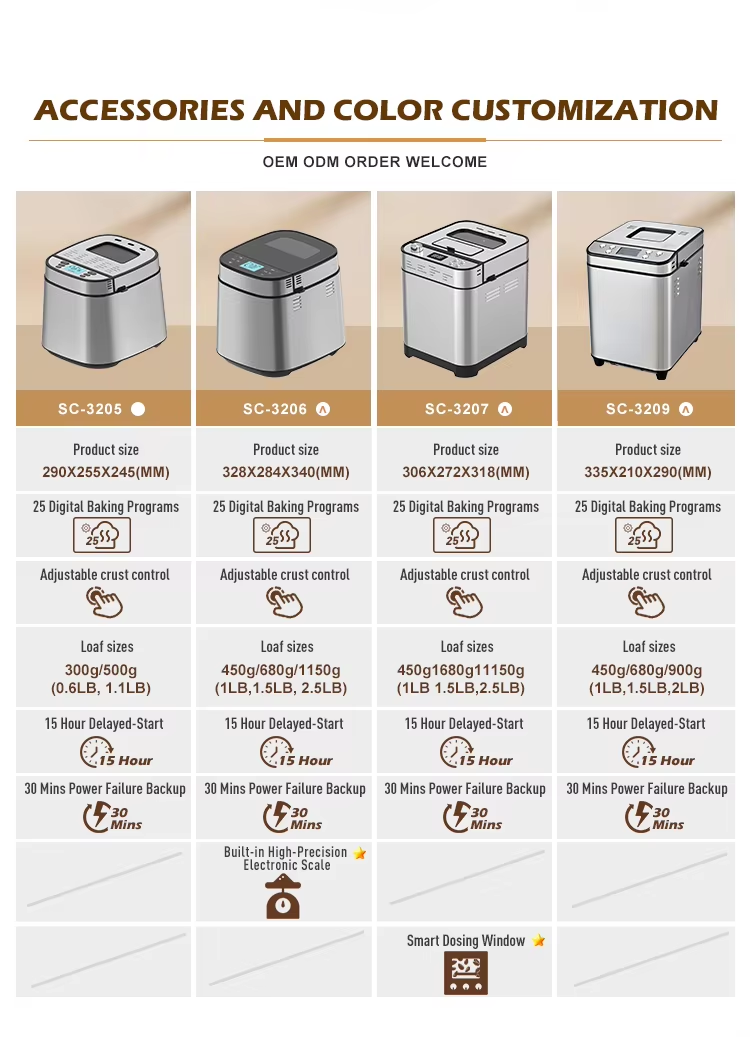 Compact Bread Maker Factory 25 in 1 Programs Fully Automatic Multifunctional 2LB Stainless Steel Bread Maker Machine